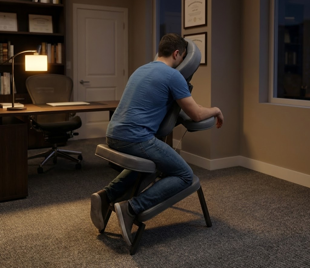 Seated massage means working with whatever body walks through the door. The Traveller adjusts to fit nearly everyone.